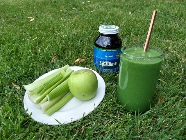 I’m a big believer in eating greens 3 times a day and making yourself a smoothie is an easy way to introduce more greens into your diet. If you don’t like to have something cold for breakfast you can always have it in the afternoon or make a smaller one to have along with your normal breakfast. It will give you a big energy boost for the whole day! Greens are high in vitamins C, A, K, E, folate, iron and calcium. They are also full of fibre which help you feel fuller for longer (great for weight loss). Greens boost your immune system as well as improve your heart health, they also contain lutein and zeaxanthin which reduce your risk of cataracts and muscular degeneration. The high vitamin C, A and E content is essential for healthy glowing skin. Spirulina is a type of algae which is high in antioxidants, chlorophyll and vitamins B, beta-carotene and vitamin E. It is also high in minerals such as iron and it has a 60% protein content. Spirulina is great for fatigue and can help protect against viral infections. It is best to use an organic brand. (If you haven’t taken it before then start with a small amount of 1/4 tsp. Avoid if you are allergic to seafood or sea vegetables.)